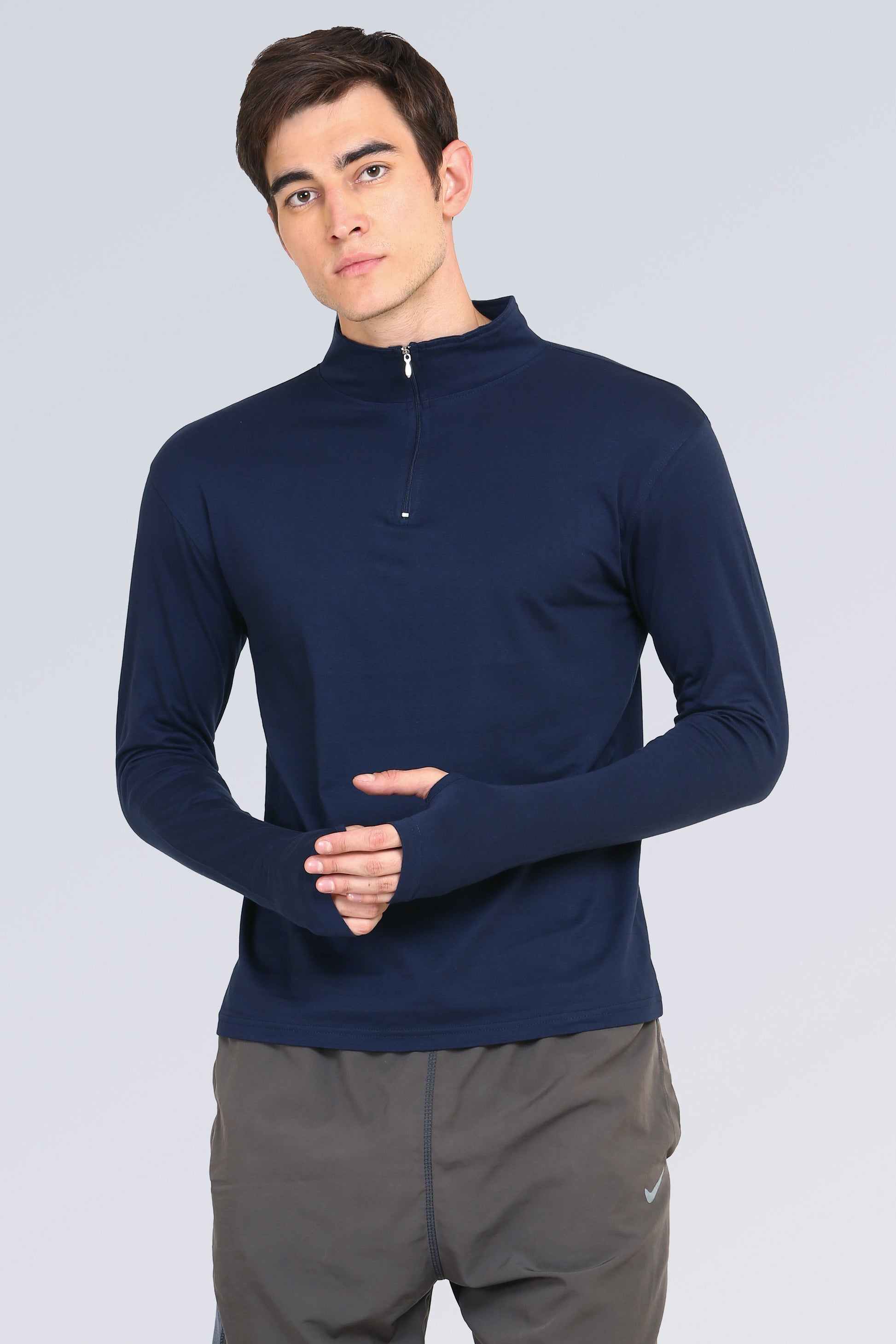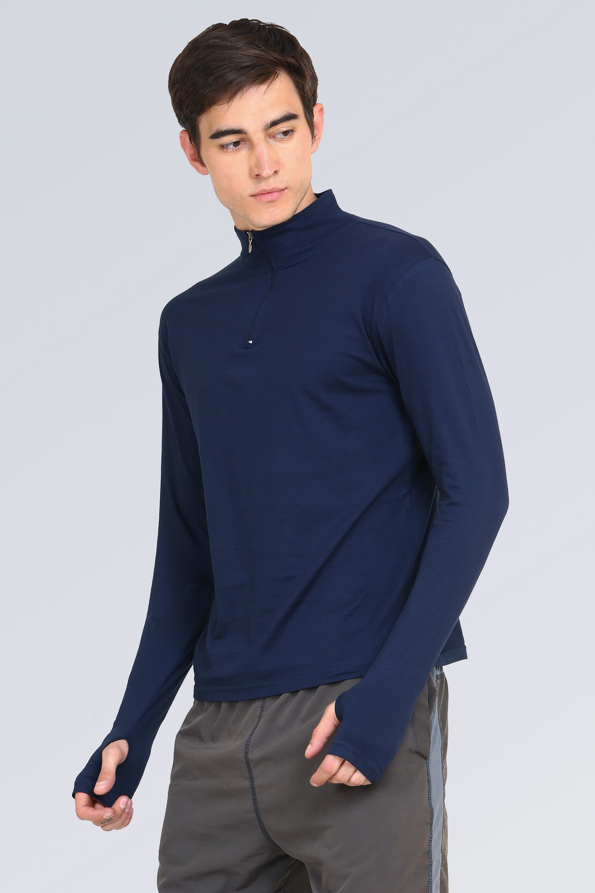 Ap'pulse Men's 1/4 Hineck Zipper Thumbopen Tshirt