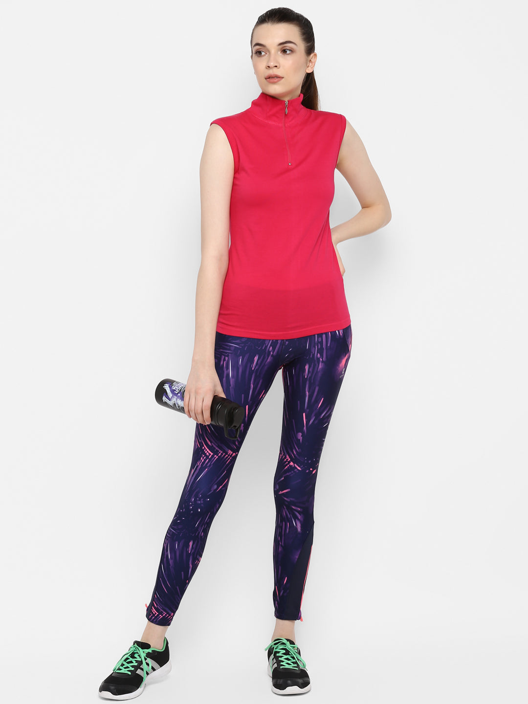 Ap'pulse Women's Sleeveless 1/4 Zip Hi Neck Tshirt