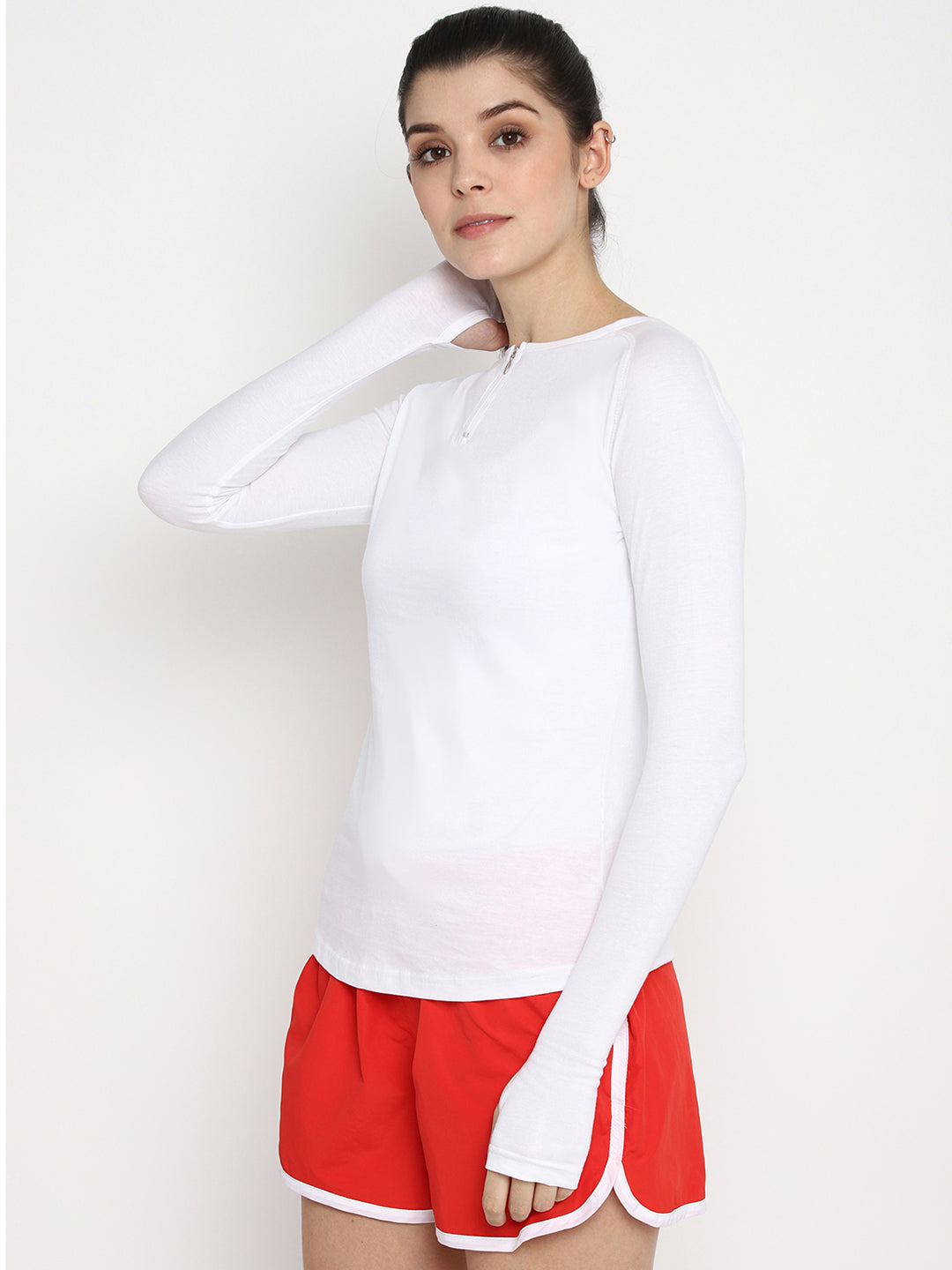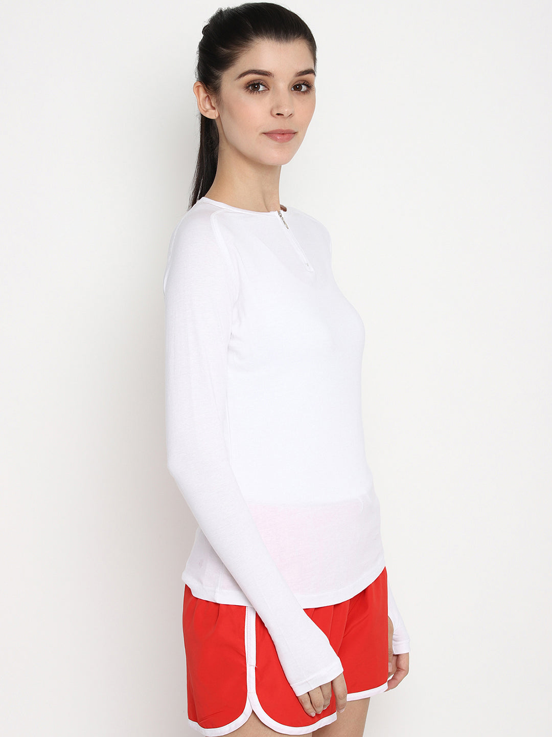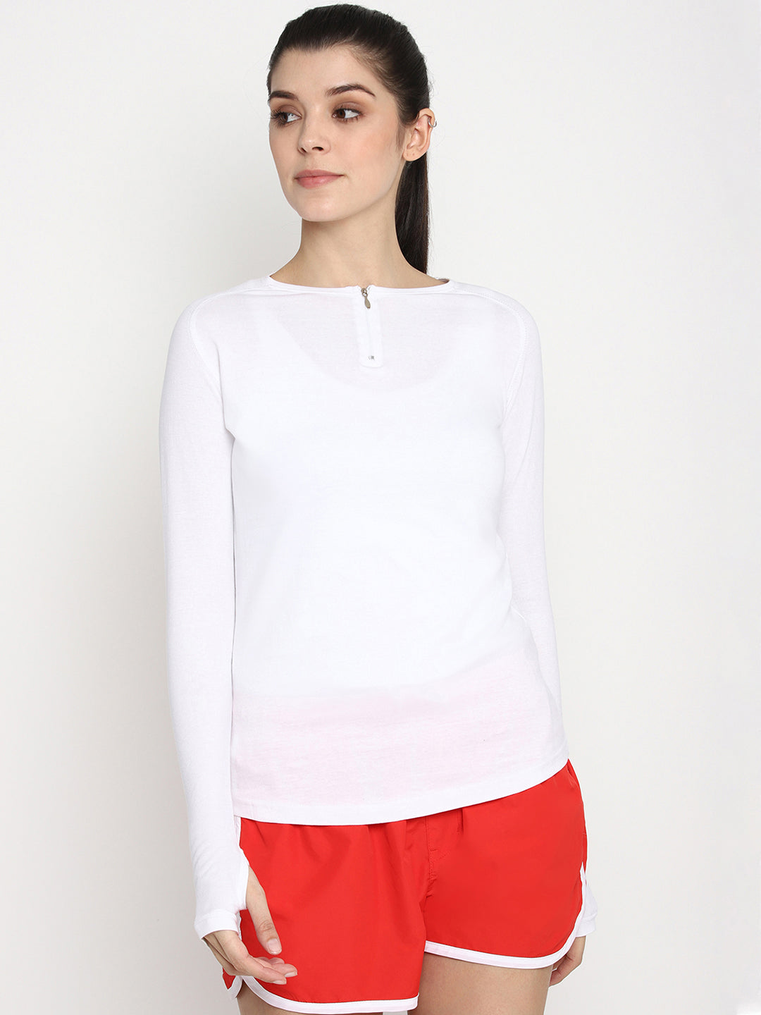 Ap'pulse Women's Round Neck Zipper Long Sleeve Tshirt