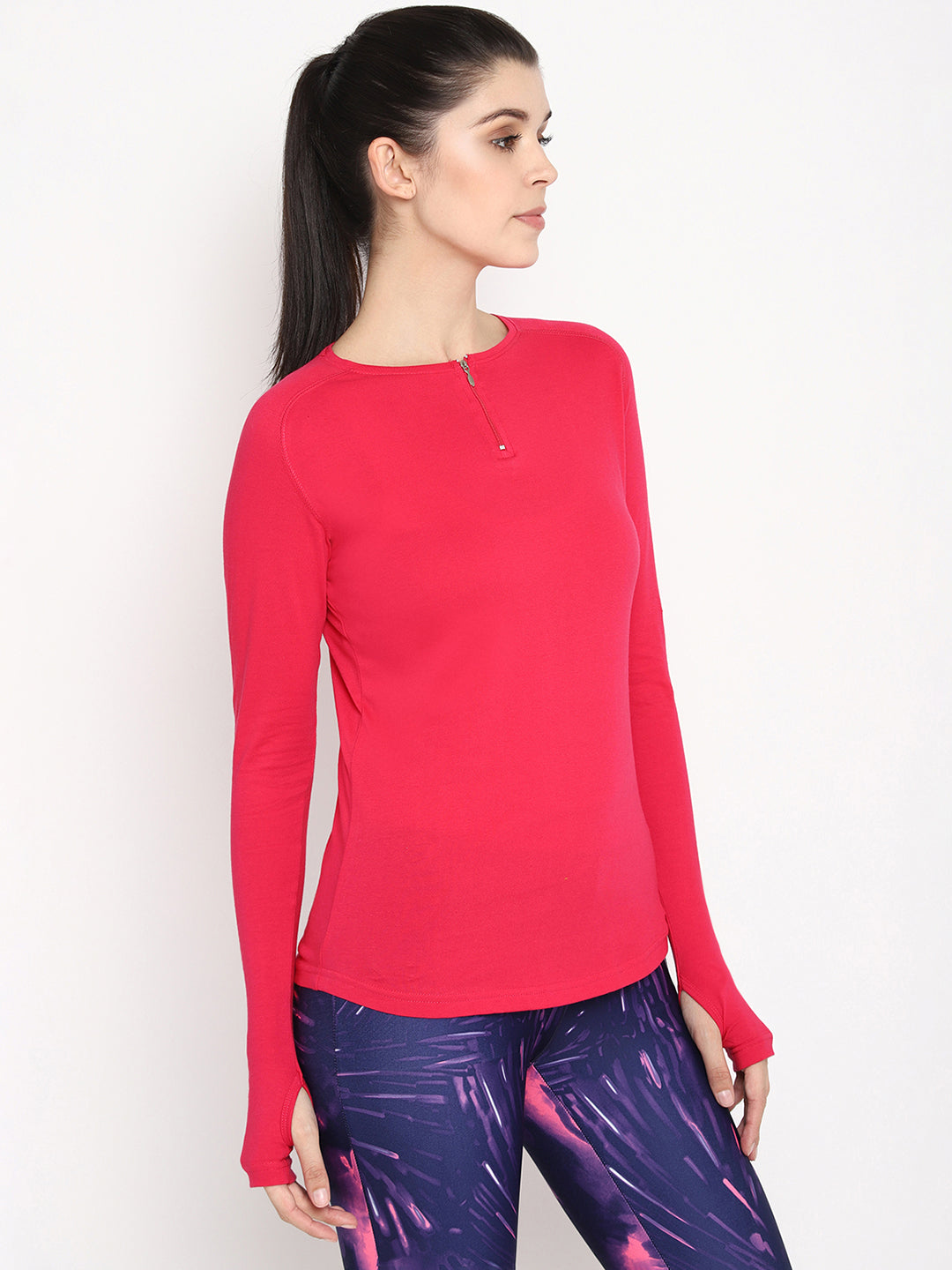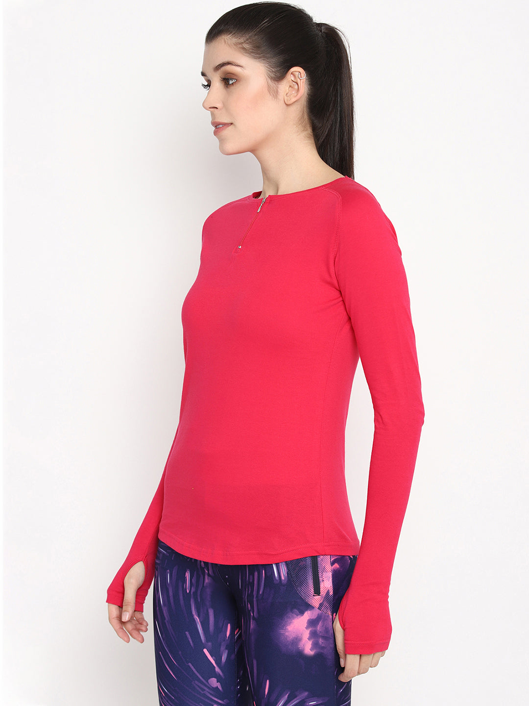Ap'pulse Women's Round Neck Zipper Long Sleeve Tshirt