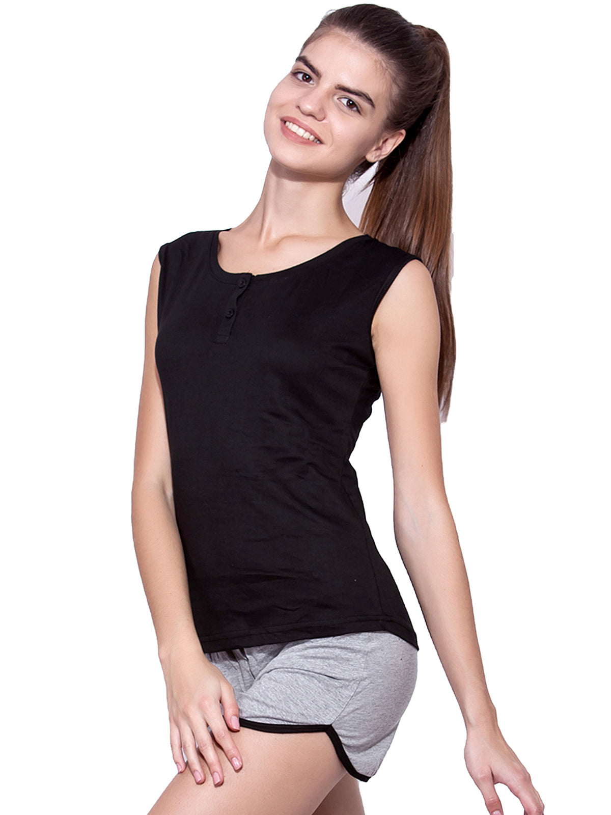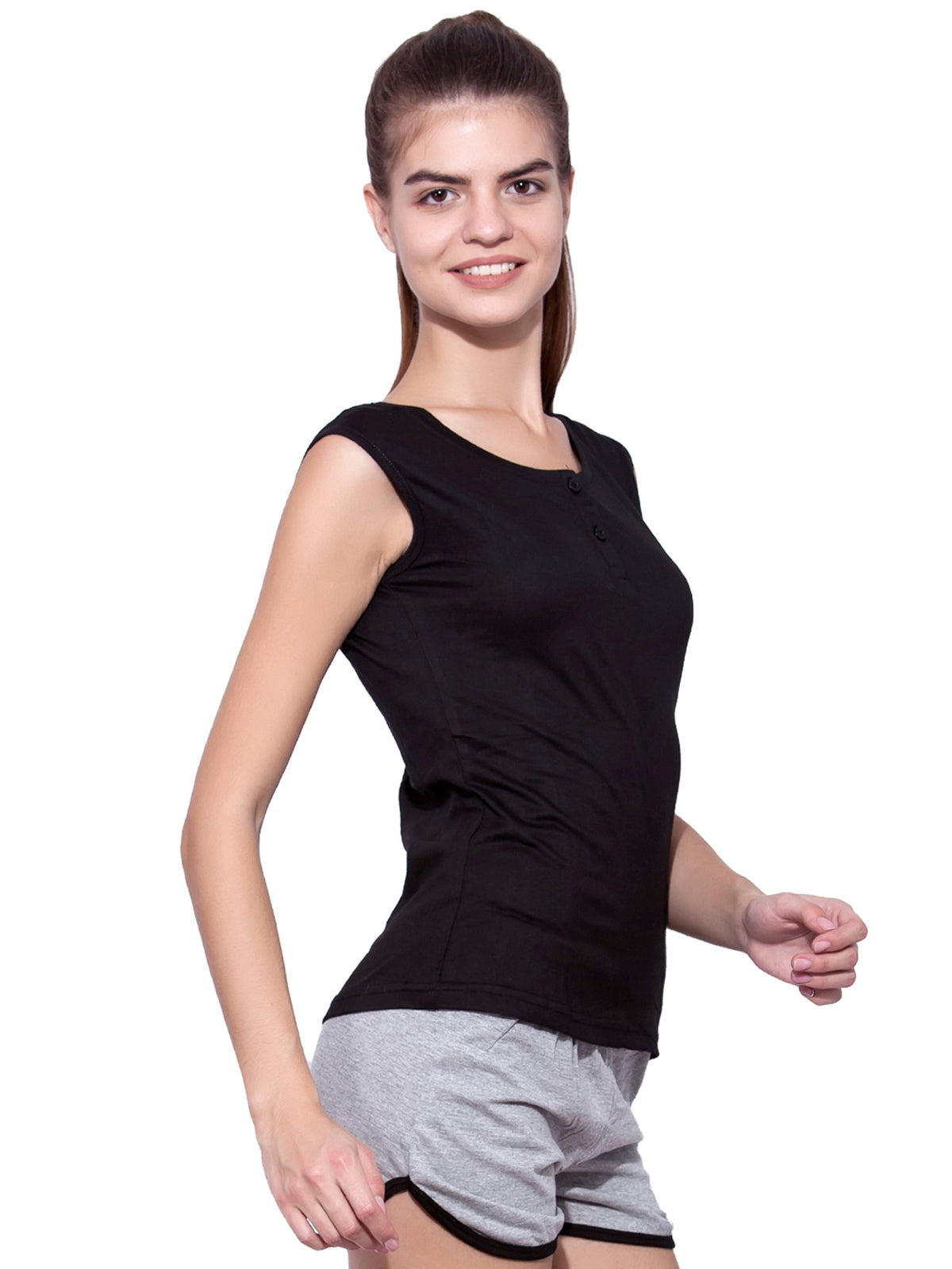 Ap'pulse Women's Sleeveless Henley Tshirt