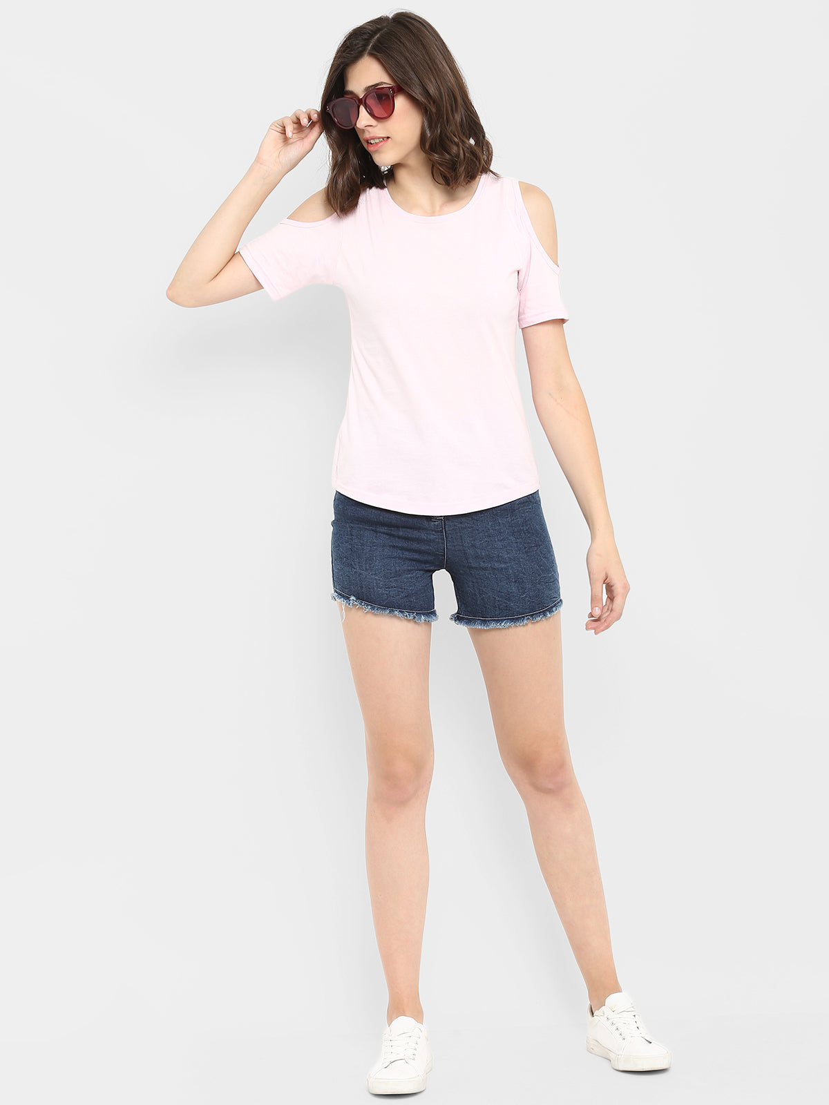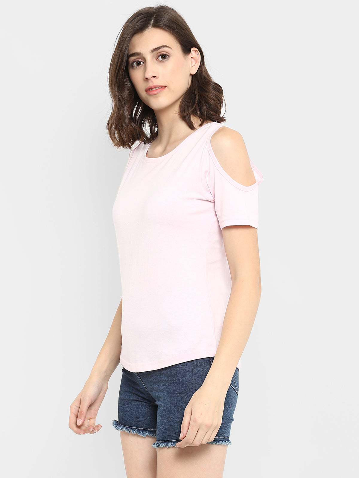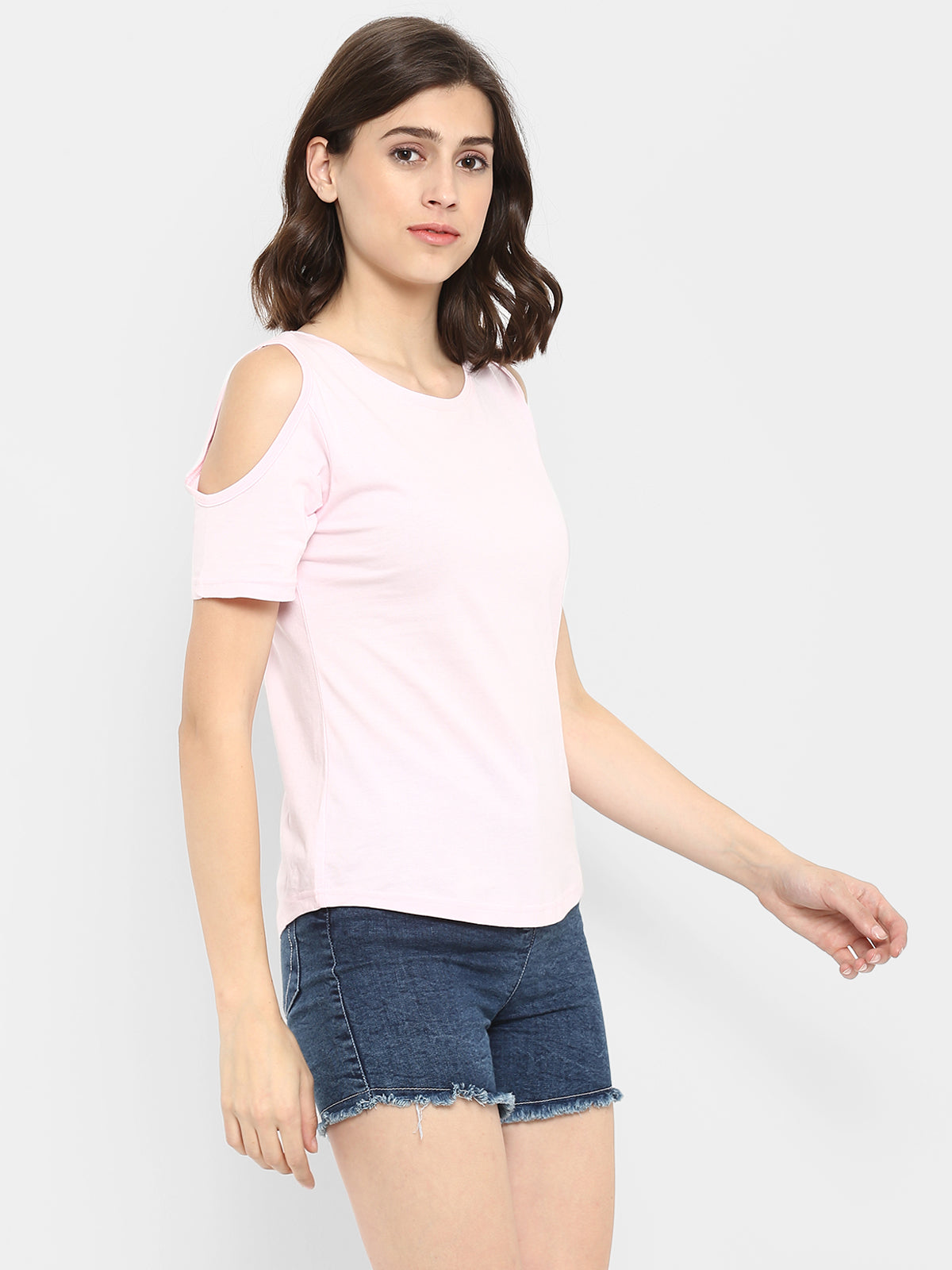 Ap'pulse Women's Round Neck Cold Shoulder Tshirt