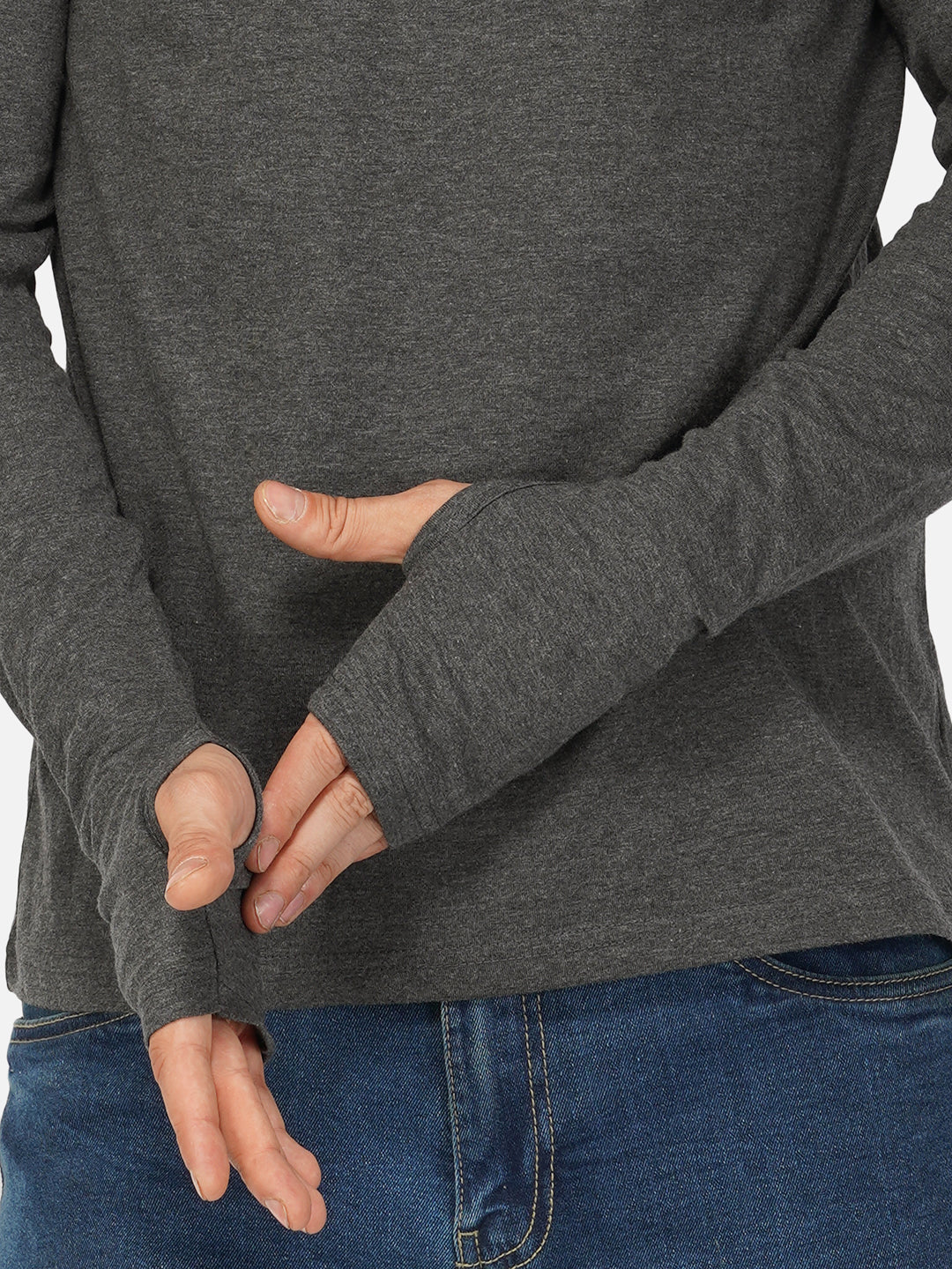 Ap'pulse Men's Round Neck Long Sleeve Thumbopen Tshirt