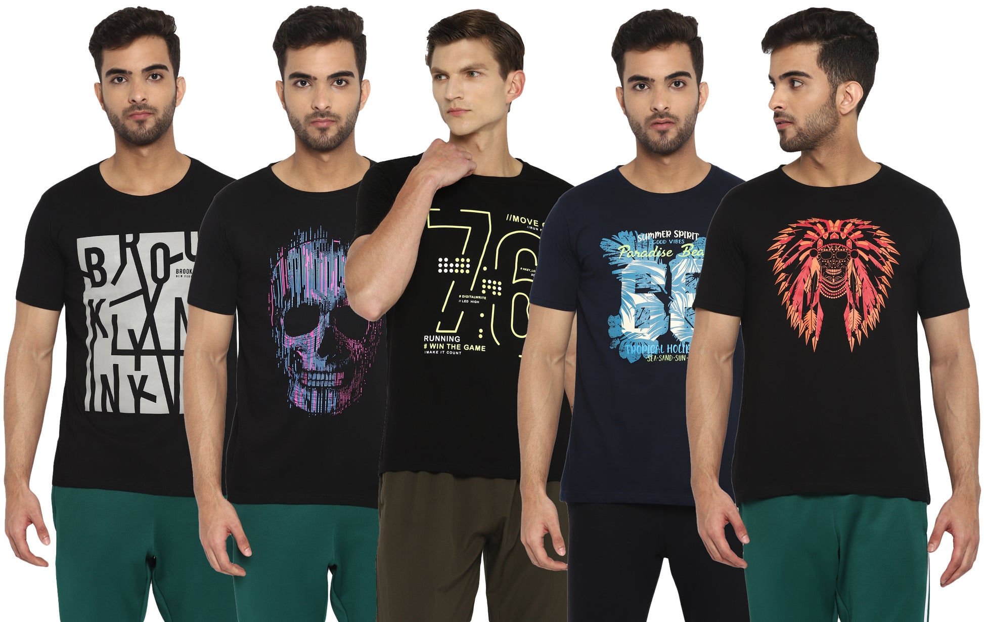 Ap'pulse Men's Printed T-Shirt(Pack of 5)